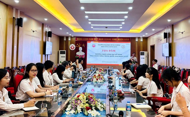 Sáng nay, ngày 20/9/2025 Khoa tiếng Trung Quốc Trường Đại học Hùng Vương tổ chức tọa đàm khoa học: “Phương pháp giảng dạy kỹ năng thực hành tiếng Trung Quốc giai đoạn cơ sở”.