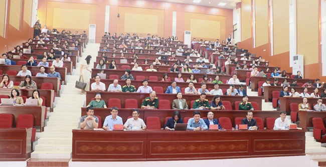 Tham dự Hội nghị có TS. Hoàng Công Kiên - Bí thư Đảng ủy, Chủ tịch Hội đồng trường; TS. Đỗ Khắc Thanh - Phó Bí thư Đảng ủy, Hiệu trưởng cùng các đồng chí trong Ban thường vụ Đảng ủy; BCH Đảng bộ, Bí thư các Chi bộ và hơn 300 cán bộ đảng viên trong toàn trường.