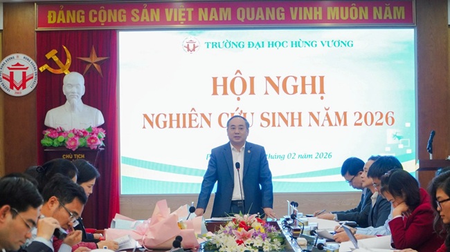Chiều nay, ngày 06/02/2026, Trường Đại học Hùng Vương tổ chức Hội nghị nghiên cứu sinh (NCS) năm 2026 nhằm đánh giá công tác đào tạo, bồi dưỡng cán bộ giảng viên trình độ cao của Nhà trường trong thời gian qua.