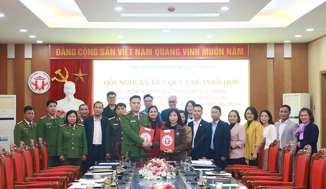Hội nghị ký kết Quy chế phối hợp giữa Trường Đại học Hùng Vương và công an địa phương