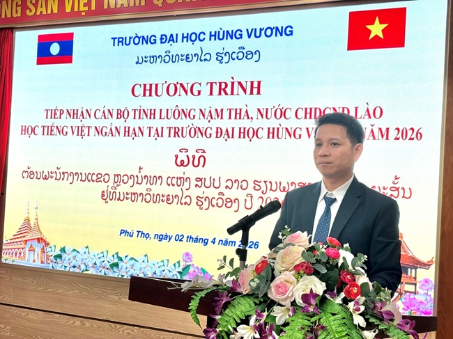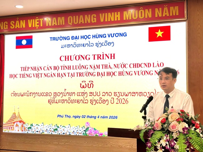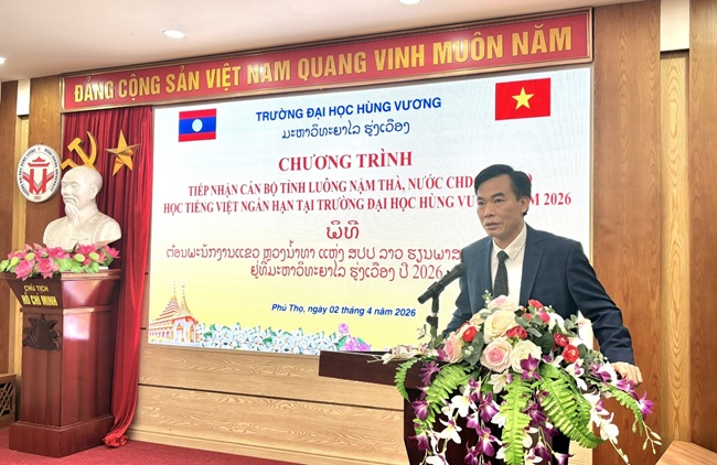 Sáng ngày 02/4/2026, Trường Đại học Hùng Vương tổ chức chương trình tiếp nhận cán bộ tỉnh Luông Nậm Thà nước CHDCND Lào đến học tiếng Việt ngắn hạn năm 2026.
