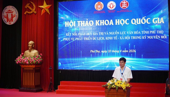 Sáng ngày 09/4/2026, Trường Đại học Hùng Vương phối hợp với Sở Văn hoá, Thể thao và Du lịch tỉnh Phú Thọ và Trường Đại học KHXH&NV - Đại học Quốc gia Hà Nội tổ chức Hội thảo khoa học quốc gia: “Kết nối, phát huy giá trị và nguồn lực văn hoá tỉnh Phú Thọ phục vụ phát triển du lịch, kinh tế - xã hội trong kỷ nguyên mới”.