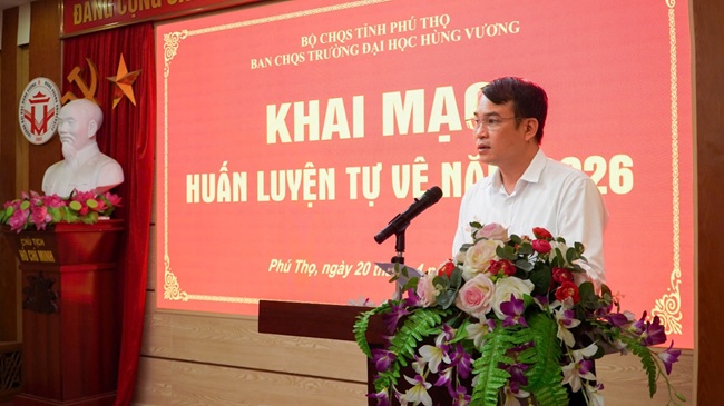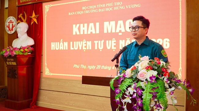 Thực hiện kế hoạch công tác huấn luyện tự vệ năm 2026, sáng ngày 20/4/2026, Ban CHQS Trường Đại học Hùng Vương tổ chức Khai mạc huấn luyện tự vệ năm 2026.