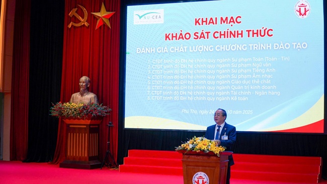 Sáng nay, ngày 24/10/2025 Đoàn Chuyên gia đánh giá ngoài thuộc Trung tâm Kiểm định chất lượng giáo dục - Đại học Quốc Gia Hà Nội (KĐCLGD - ĐHQGHN) phối hợp với Trường Đại học Hùng Vương tổ chức Khai mạc Đợt khảo sát chính thức phục vụ đánh giá ngoài theo tiêu chuẩn đánh giá chất lượng giáo dục của Bộ Giáo dục và Đào tạo.