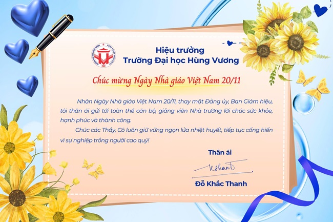 Thiếp chúc mừng Ngày Nhà giáo Việt Nam 20/11 của Hiệu trưởng Trường Đại học Hùng Vương