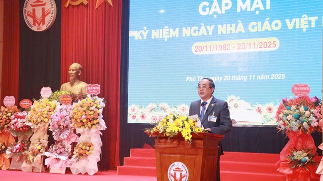 Phát biểu tại chương trình gặp mặt, TS. Đỗ Khắc Thanh, Hiệu trưởng Nhà trường khẳng định rằng Ngày Nhà giáo Việt Nam 20/11 là dấu mốc đặc biệt để tri ân những người đã và đang cống hiến cho sự nghiệp trồng người. Đây không chỉ là dịp để nhìn lại chặng đường đã qua, mà còn là cơ hội để khẳng định vai trò, vị thế của đội ngũ nhà giáo trong sự phát triển của nhà trường. Thay mặt Đảng ủy, Ban Giám hiệu Nhà trường, đồng chí Hiệu trưởng trân trọng gửi tới các thầy, cô giáo lời chúc sức khỏe, hạnh phúc và luôn giữ trọn ngọn lửa nhiệt huyết với nghề. Đồng chí Hiệu trưởng mong rằng trong thời gian tới, mỗi thầy cô sẽ tiếp tục phát huy phẩm chất cao đẹp của nhà giáo; tiếp tục lan tỏa niềm đam mê tri thức và cùng nhau xây dựng Trường Đại học Hùng Vương trở thành môi trường học tập, nghiên cứu, sáng tạo tiêu biểu của tỉnh Phú Thọ và cả nước.