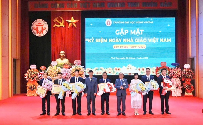 Sáng nay, ngày 20/11/2025 Trường Đại học Hùng Vương long trọng tổ chức chương trình gặp mặt kỷ niệm 43 năm ngày Nhà giáo Việt Nam 20/11.