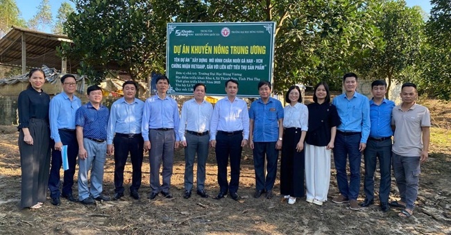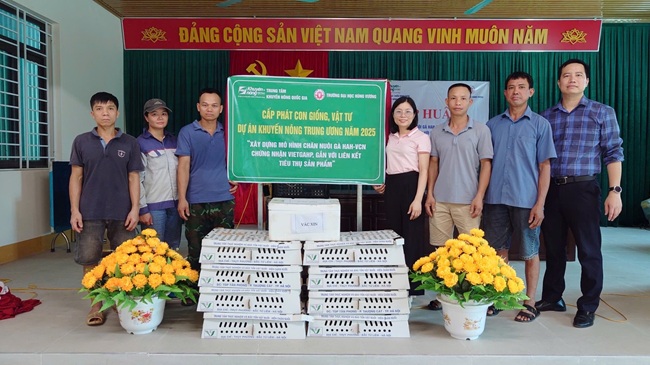 Năm 2025, Trường Đại học Hùng Vương tiếp tục triển khai Dự án Khuyến nông Trung ương “Xây dựng mô hình chăn nuôi gà HAH-VCN chứng nhận VietGAHP, gắn với liên kết tiêu thụ sản phẩm” tại hai tỉnh Phú Thọ và Lào Cai. Quy mô dự án gồm 11.000 con gà HAH-VCN với sự tham gia của bảy hộ dân tại xã Thanh Sơn, tỉnh Phú Thọ và xã Trấn Yên, tỉnh Lào Cai. Dự án hướng tới mục tiêu xây dựng vùng nguyên liệu gà đặc sản tập trung, có truy xuất nguồn gốc và gắn với liên kết tiêu thụ sản phẩm. Các hộ chăn nuôi được hỗ trợ 70% vật tư thiết yếu như con giống, thức ăn, vắc xin, chế phẩm sinh học và hóa chất sát trùng. Người dân đối ứng 30% chi phí chuồng trại, thiết bị và nhân công, qua đó vừa giảm gánh nặng tài chính vừa đảm bảo tính chủ động và trách nhiệm trong quá trình nuôi.