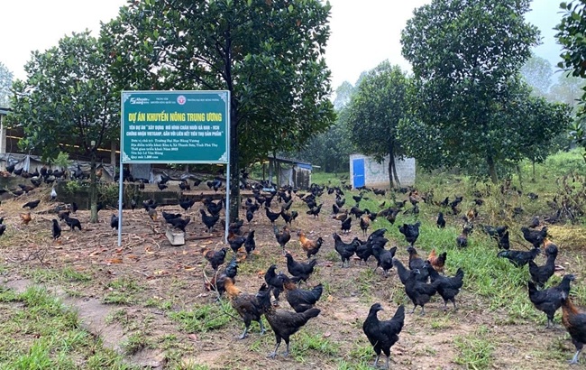 Trong quá trình triển khai, Trường Đại học Hùng Vương phối hợp với các sở, trung tâm khuyến nông và chính quyền địa phương để cấp phát giống, vật tư, tổ chức tập huấn kỹ thuật và giám sát thực hiện. Dự án đã tổ chức bốn lớp tập huấn cho gần 80 hộ dân, giúp người chăn nuôi tiếp cận quy trình VietGAHP và nhận thức rõ hơn về tầm quan trọng của liên kết tiêu thụ sản phẩm theo chuỗi giá trị. Đồng thời, công tác tuyên truyền được đẩy mạnh thông qua hội thảo tham quan, hội nghị tổng kết, phát hành tờ gấp kỹ thuật và biển báo mô hình. Kết quả cho thấy sau 16 tuần nuôi, đàn gà đạt tỷ lệ sống từ 97 đến 98%, khối lượng xuất chuồng bình quân 1,74 – 1,76 kg/con. Mô hình đã được cấp hai chứng nhận VietGAHP cho Tổ hợp tác chăn nuôi gà tại xã Thanh Sơn và Hợp tác xã MQ tại xã Trấn Yên. Đặc biệt, 100% sản phẩm được doanh nghiệp liên kết bao tiêu, giúp người dân yên tâm về đầu ra. Hiệu quả kinh tế của mô hình cao hơn 20% so với chăn nuôi đại trà, quy mô nhân rộng tăng trên 18% so với ban đầu.