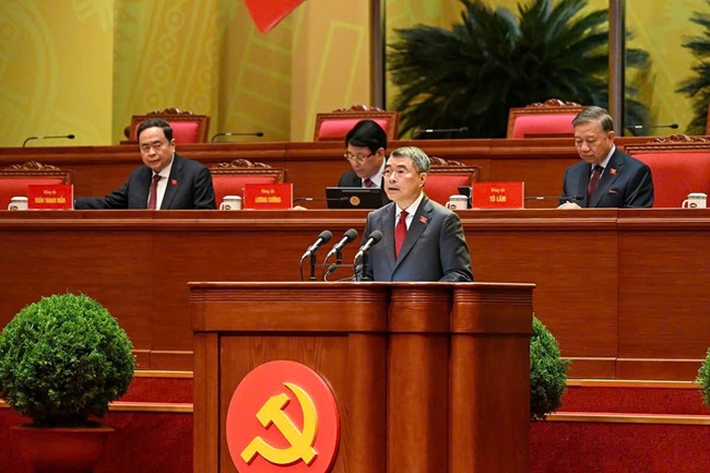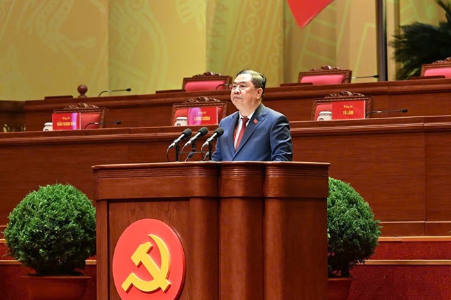 Đồng chí Lê Minh Hưng, Uỷ viên Bộ Chính trị, Bí thư Trung ương Đảng, Trưởng Ban Tổ chức Trung ương phát biểu