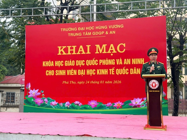 Sáng nay, ngày 24/01/2026, Trường Đại học Hùng Vương long trọng tổ chức Khai mạc khóa học Giáo dục quốc phòng và an ninh (GDQP&AN) cho hơn 1500 sinh viên K67 Đại học Kinh tế Quốc dân.