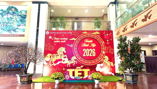 Hòa trong không khí chào đón Xuân Bính Ngọ 2026, Trường Đại học Hùng Vương (HVU) khoác lên mình diện mạo rực rỡ và tươi mới, ngập tràn sắc xuân. Toàn bộ khuôn viên Nhà trường được trang hoàng bằng những gam màu tươi tắn, hài hòa giữa nét đẹp truyền thống và hơi thở hiện đại. Nhiều góc check-in được thiết kế sáng tạo, bài bản, tạo nên những điểm nhấn ấn tượng, trở thành nơi lưu giữ khoảnh khắc đáng nhớ của cán bộ, giảng viên và sinh viên trong những ngày đầu năm mới. Không khí xuân tràn về đã lan tỏa nguồn năng lượng tích cực, mở ra một năm học mới với khí thế mới, quyết tâm mới và kỳ vọng mới. Đây cũng là động lực để tập thể Nhà trường tiếp tục nỗ lực đổi mới, bứt phá vươn lên, khẳng định uy tín và vị thế của Trường Đại học Hùng Vương trong khu vực và trên cả nước.