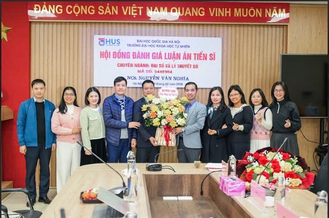 Sáng nay, ngày 12/02/2026, tại Trường Đại học Khoa học Tự nhiên - ĐHQGHN, Nghiên cứu sinh (NCS) Nguyễn Văn Nghĩa - Trưởng Phòng Khảo thí & Đảm bảo chất lượng Trường Đại học Hùng Vương đã bảo vệ thành công luận án Tiến sĩ với đề tài: “Bất biến modular của vành đa thức modulo lũy thừa Frobenius” dưới sự hướng dẫn của PGS. TS Lê Minh Hà - Giám đốc điều hành Viện nghiên cứu cao cấp về Toán và PGS. TS Nguyễn Đặng Hồ Hải - Đại học Khoa học - Đại học Huế.