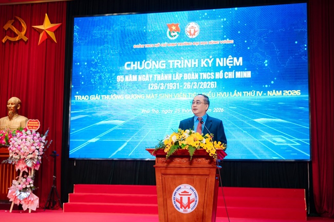 Tối ngày 26/3/2026, Đoàn TNCS Hồ Chí Minh Trường Đại học Hùng Vương long trọng tổ chức Chương trình kỷ niệm 95 năm ngày thành lập Đoàn TNCS Hồ Chí Minh và Trao thưởng Gương mặt sinh viên tiêu biểu HVU năm 2026.