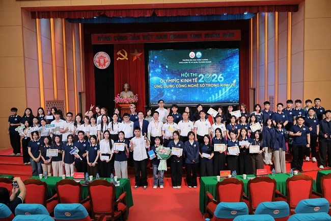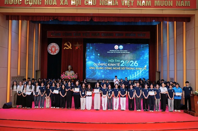Hội thi Olympic Kinh tế năm 2026 với chủ đề: “Ứng dụng công nghệ số trong kinh tế” đã khép lại trong không khí sôi nổi, sáng tạo và đầy cảm hứng. Hội thi không chỉ là sân chơi học thuật bổ ích, giúp sinh viên nâng cao kiến thức chuyên môn, kỹ năng ứng dụng công nghệ số vào lĩnh vực kinh tế, mà còn góp phần lan tỏa tinh thần đổi mới, sáng tạo và khởi nghiệp trong thời đại số góp phần đào tạo nguồn nhân lực chất lượng cao, đáp ứng yêu cầu phát triển kinh tế - xã hội trong bối cảnh chuyển đổi số hiện nay.