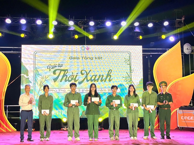 Đại diện Lãnh đạo trường, đại diện Lãnh đạo các đơn vị Trường ĐH Hùng Vương và Học viện Tài chính trao giấy khen và phần thưởng cho các sinh viên đạt thành tích xuất sắc trong khoá học tại Khu căn cứ chiến đấu giả định tỉnh Phú Thọ
