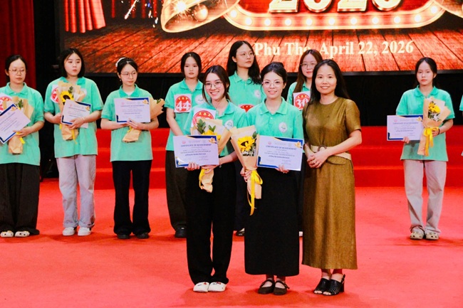 05 giải Khuyến khích: Sinh viên Nguyễn Lan Hương - Lớp K22 ĐHSP Tiếng Anh, sinh viên Nguyễn Khả Tâm - Lớp K23 ĐHNN Anh A, sinh viên Hoàng Khánh Ly - Lớp K22 ĐHSP Tiếng Anh, sinh viên Lê Thị Mai Phượng - Lớp K23 ĐHNN Anh E, sinh viên Trần Hồng Nhung - Lớp K21 ĐHNN Anh B.
