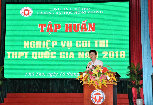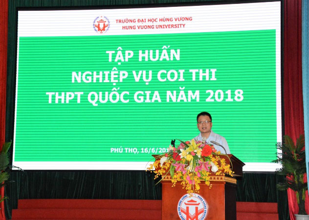 Sáng ngày 16/6/2018, Trường Đại học Hùng Vương tổ chức Hội nghị tập huấn nghiệp vụ coi thi THPT quốc gia năm 2018. Dự Hội nghị có TS. Đỗ Tùng – Phó Bí thư Đảng ủy, Phó Hiệu trưởng; TS. Hoàng Công Kiên – Phó Hiệu trưởng, Phó Trưởng ban chỉ đạo, Phó Chủ tịch Hội đồng thi THPT Quốc gia năm 2018 tại tỉnh Phú Thọ; lãnh đạo các đơn vị trực thuộc trường và cán bộ, giảng viên tham gia coi thi.