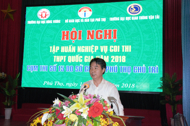 Sáng ngày 18/6/2018, Sở Giáo dục và Đào tạo Phú Thọ phối hợp với Trường Đại học Hùng Vương và Trường Đại học Giao thông vận tải tổ chức Hội nghị tập huấn nghiệp vụ coi thi THPT quốc gia năm 2018.