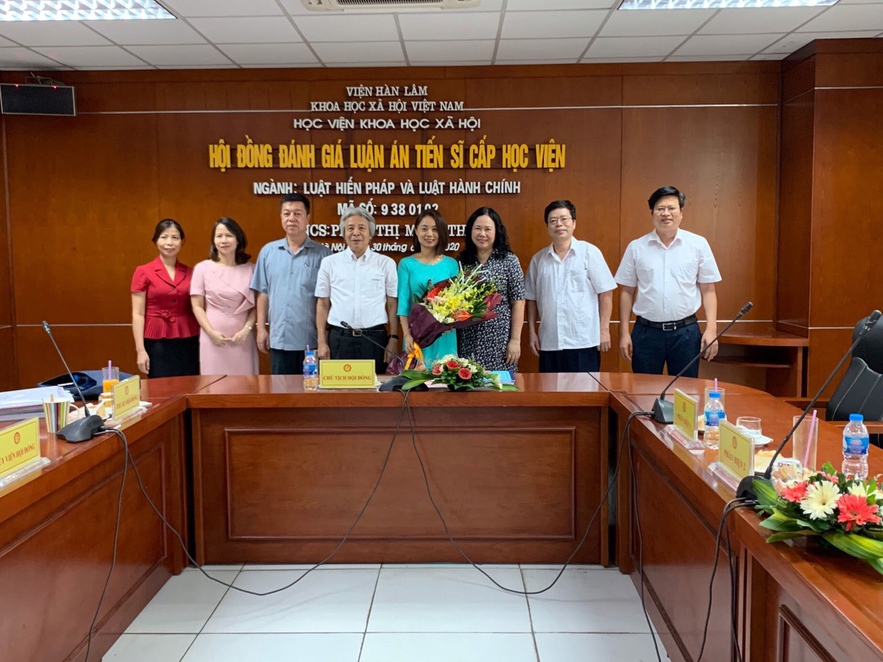 Tham gia Hội đồng chấm luận án Tiến sĩ cấp Viện là các chuyên gia, nhà nghiên cứu, nhà khoa học hàng đầu trong lĩnh vực Luật học: GS. TS Võ Khánh Vinh, Học viện Khoa học xã hội - Chủ tịch HĐ, GS. TS Thái Vĩnh Thắng, Trường ĐH Luật Hà Nội - Phản biện 1, PGS. TS Trương Hồ Hải, Học viện Chính trị quốc gia Hồ Chí Minh - Phản biện 2, PGS. TS Lê Văn Long, Trường ĐH Luật Hà Nội - Ủy viên, PGS. TS Vũ Trọng Lâm, Tạp chí Cộng sản - Ủy viên, TS Đỗ Thị Kim Định, Học viện KH xã hội - Thư ký.